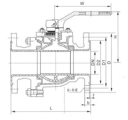 4、结构紧凑合理,阀体内腔空间小,减小了介质滞留,另外,特别的模压工艺,使密封面致密度良好,加之人字环形PTFE填料组合,使阀门达到零泄漏。